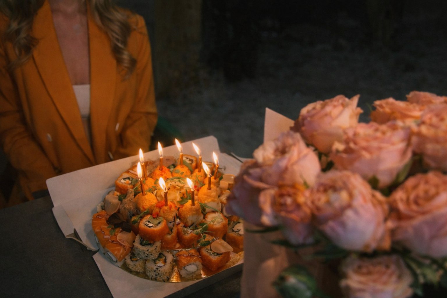 ✅ Индивидуальный подход — можем собрать торт из любимых роллов именинника.
